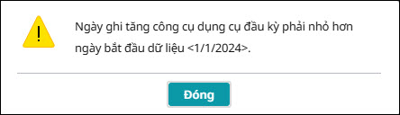 Khi tăng CCDC đầu kỳ báo lỗi “Ngày ghi tăng công cụ dụng cụ đầu kỳ phải nhỏ hơn ngày bắt đầu dữ liệu”
