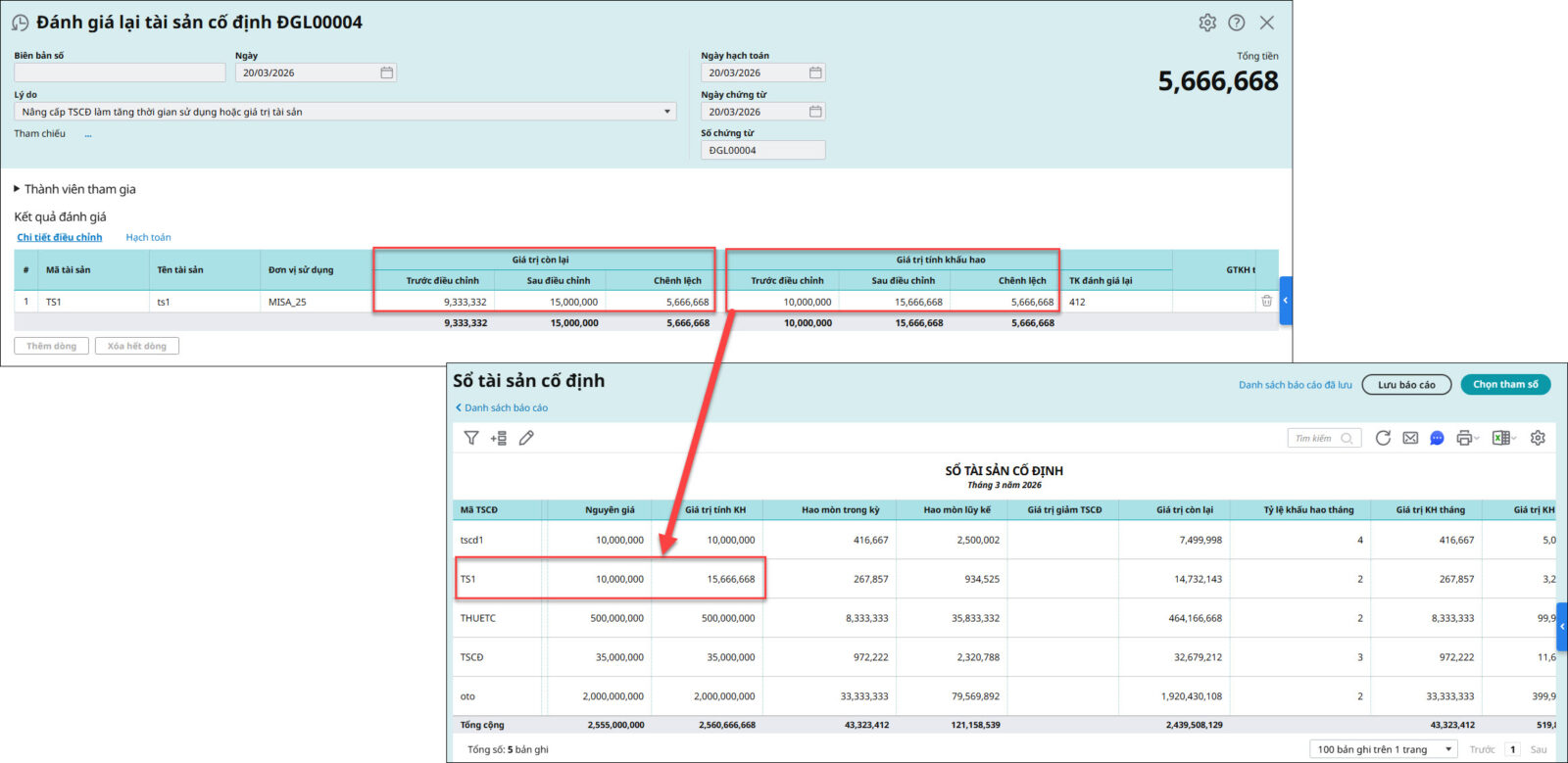 → Vì vậy, khi có phát sinh đánh giá lại giá trị tài sản, 2 chỉ tiêu này sẽ không còn bằng nhau, phản ánh đúng việc tài sản đã được thay đổi giá trị.