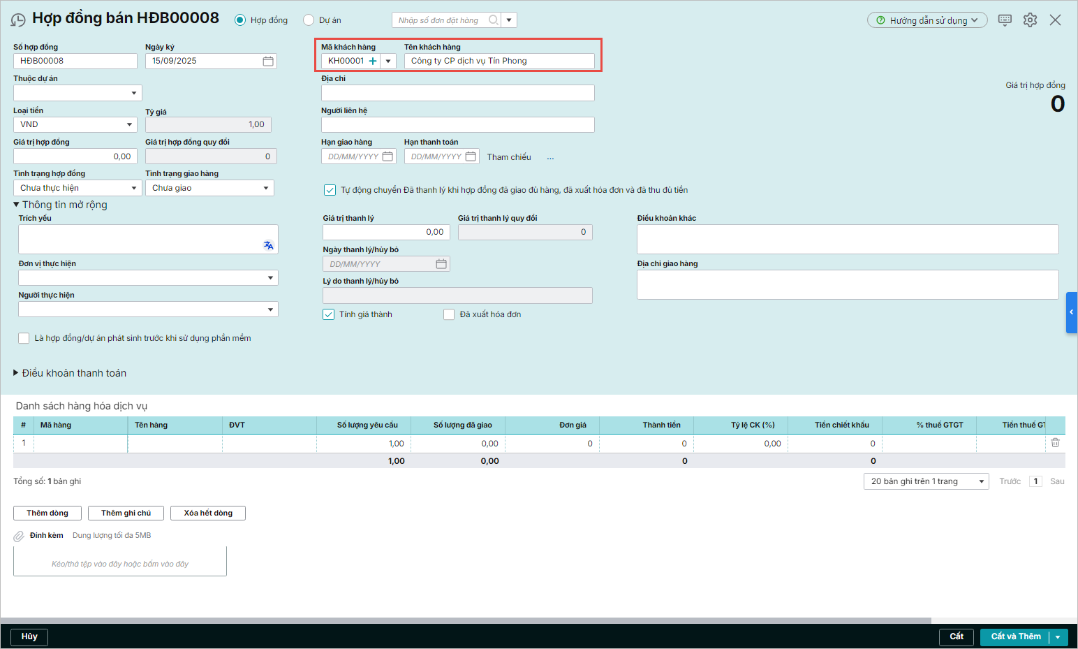 2. Hiển thị mã khách hàng trên thông tin chung của hợp đồng bán (Tách riêng thông tin mã khách hàng và tên khách hàng) để đáp ứng nhu cầu của đơn vị; giúp theo dõi thông tin hợp đồng bán hàng một cách thuận tiện, chi tiết hơn: