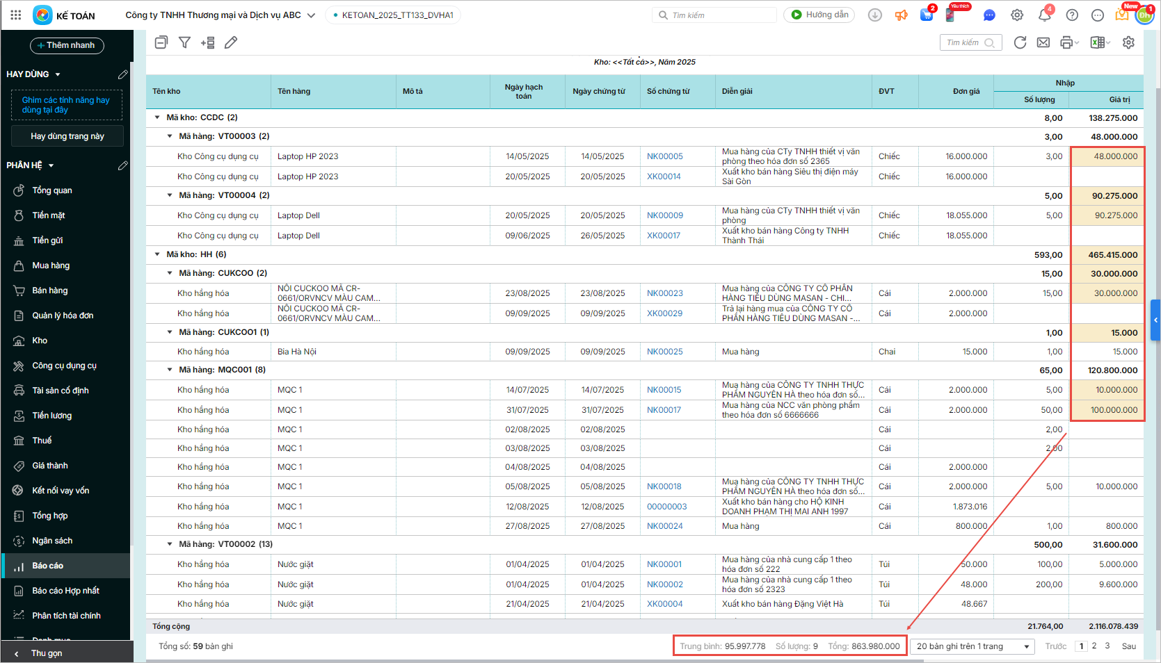 8. Bổ sung chức năng Tự động tính toán tổng hợp trên các báo cáo động: