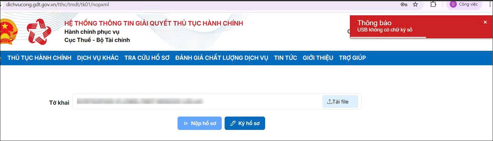 Câu hỏi 2: Ký tờ khai báo lỗi ”USB không có chữ ký số”