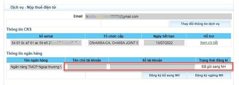 => Khi nào Phần Thông tin ngân hàng này được huỷ xong thì mới vào thay đổi chữ ký số tiếp được