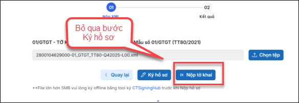Bước 9: Thực hiện tải tờ khai XML lên trang dichvucong, bỏ qua bước ký hồ sơ và nhấn Nộp tờ khai