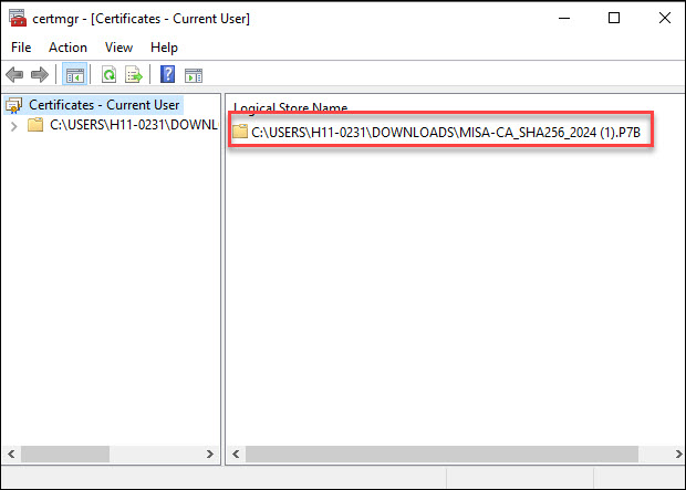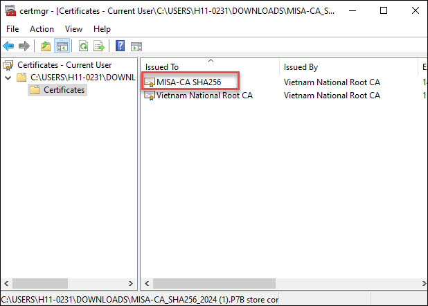 • Bước 4: Cài đặt file chứng thư số. Kích đúp vào file chứng thư vừa tải về, kích đúp tiếp vào thư mục / Certificates
