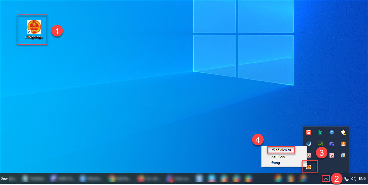 Bước 3: Nháy chuột phải vào biểu tượng phần mềm ký số ở góc dưới cùng bên phải, chọn Ký số điện tử
