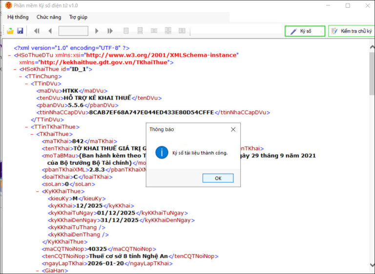 Lưu ý: Kiểm tra lại tờ khai sau khi ký bằng cách mở tờ khai bằng cách mở iTaxviewer (có thể tải công cụ tại đây