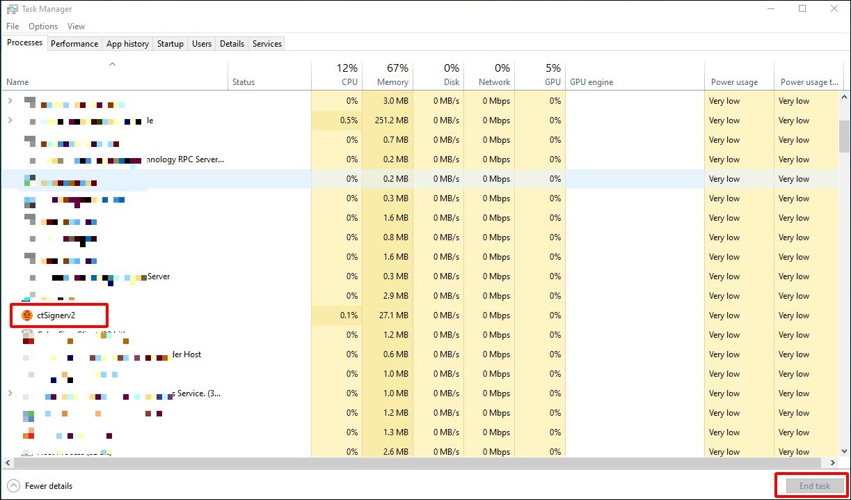 • Tại tab Processes, tìm tiến trình ctSignerv2.