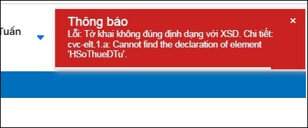 Ký tờ khai báo lỗi Tờ khai không đúng định dạng với XSD. Chi tiết: cvc-el.1.a: Cannot find the declaration of element ‘HSoThueDTu’.