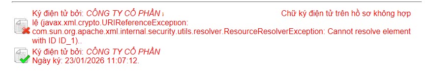 • Nếu tờ khai hiển thị chữ ký tích xanh duy nhất thì tờ khai ký thành công và hợp lệ
