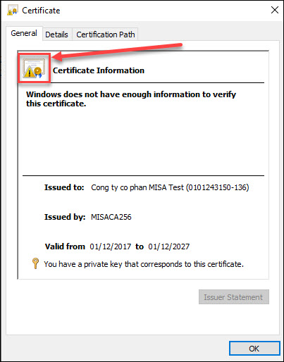• Bước 1: Mở tool esign trong máy, nhấn xem chi tiết trên hộp thoại Certificate , kiểm tra xem góc bên trái có hiện biểu tượng hình tam giác vàng