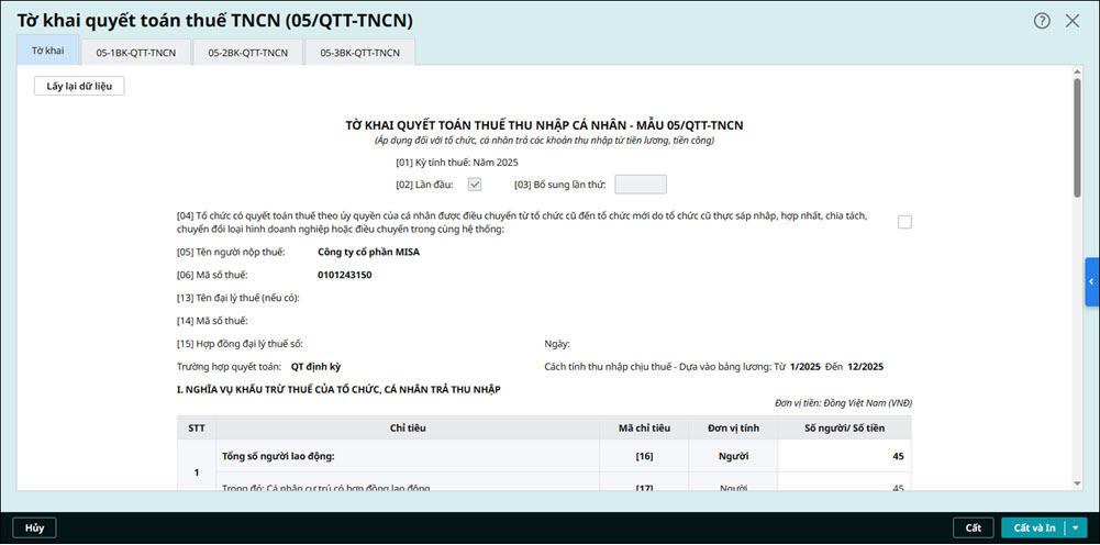 2. Căn cứ lấy số liệu trên tờ khai 05/QTT-TNCN