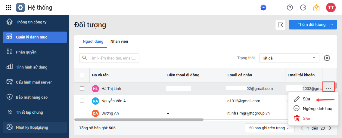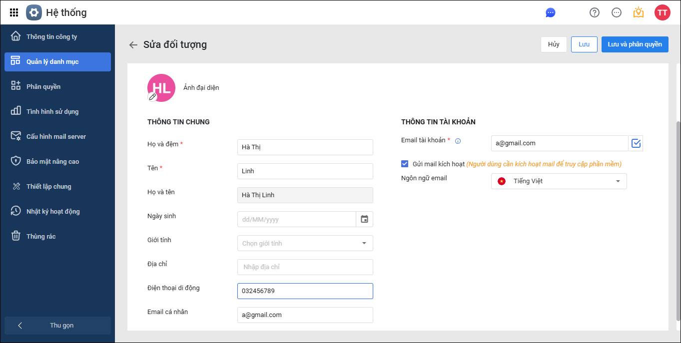 - Cập nhật thông tin liên hệ: Hướng dẫn chỉnh sửa họ tên, email, số điện thoại, địa chỉ, vai trò và gửi lại email kích hoạt.