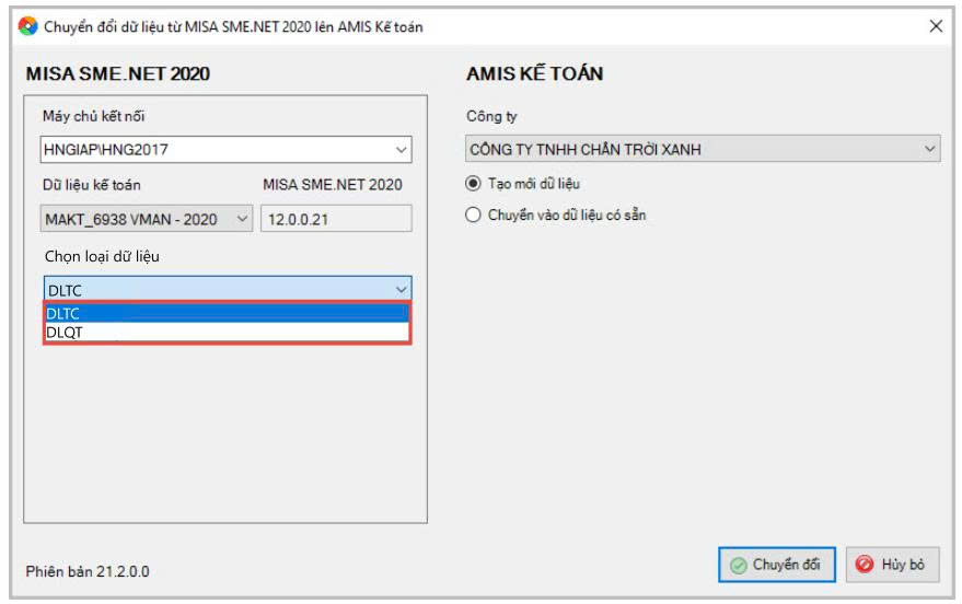 • Chọn dữ liệu kế toán cần chuyển đổi.