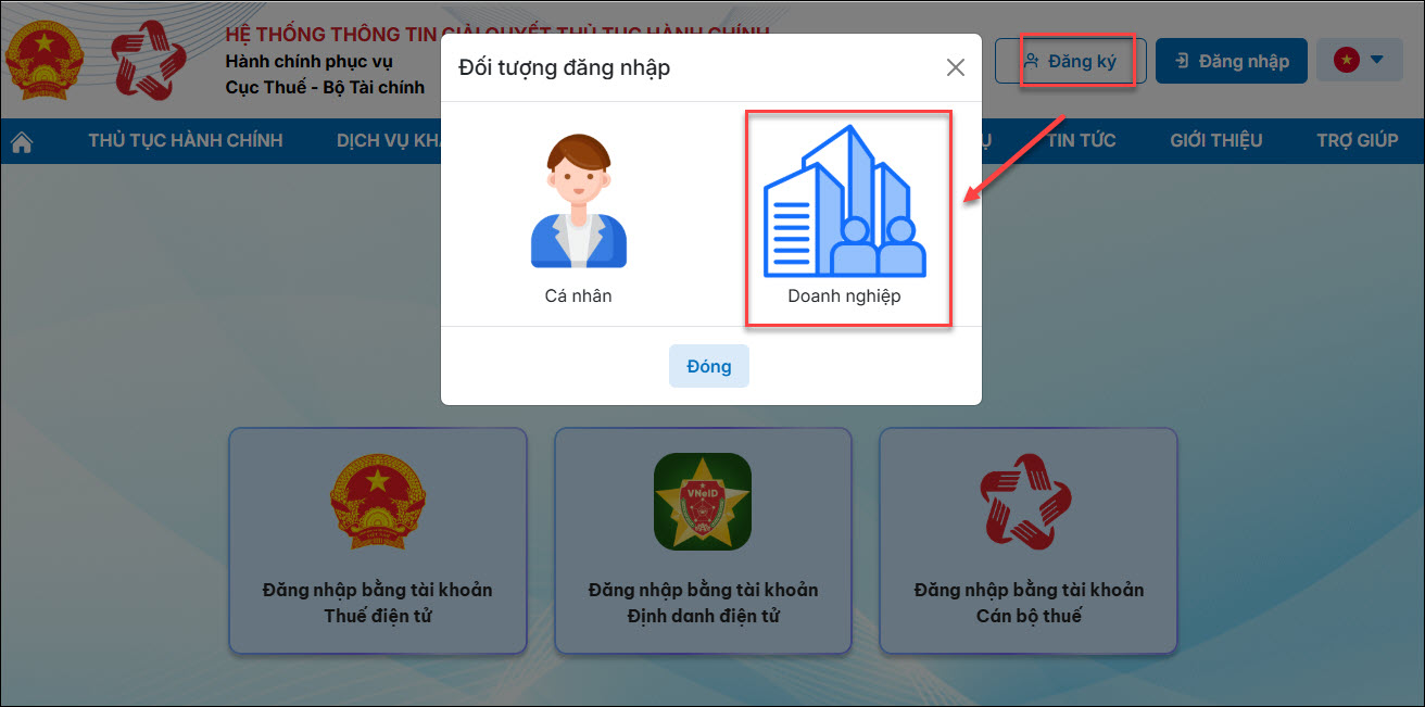 Đăng ký tài khoản trên trang Cổng dịch vụ công thuế điện tử (dichvucong.gdt.gov.vn) áp dụng với doanh nghiệp mới