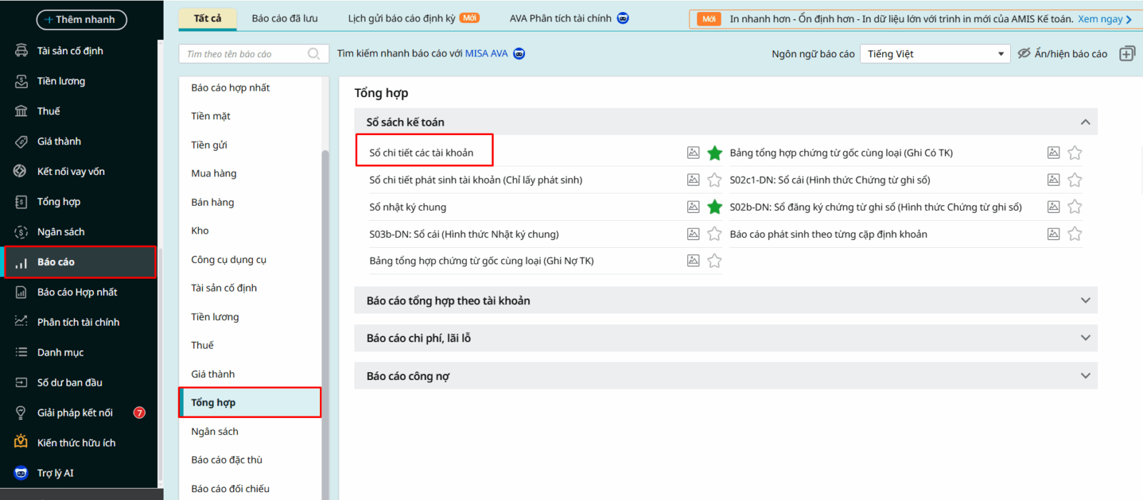 Nguyên nhân 1: Đơn vị có phát sinh các chứng từ hạch toán tài khoản 641, 642 (TT200) hoặc tài khoản 6421, 6422 (TT133) nhưng không chọn thông tin cột đơn vịBước 1: Vào Báo cáo \ Tổng hợp \ Sổ sách kế toán \ Sổ chi tiết tài khoản