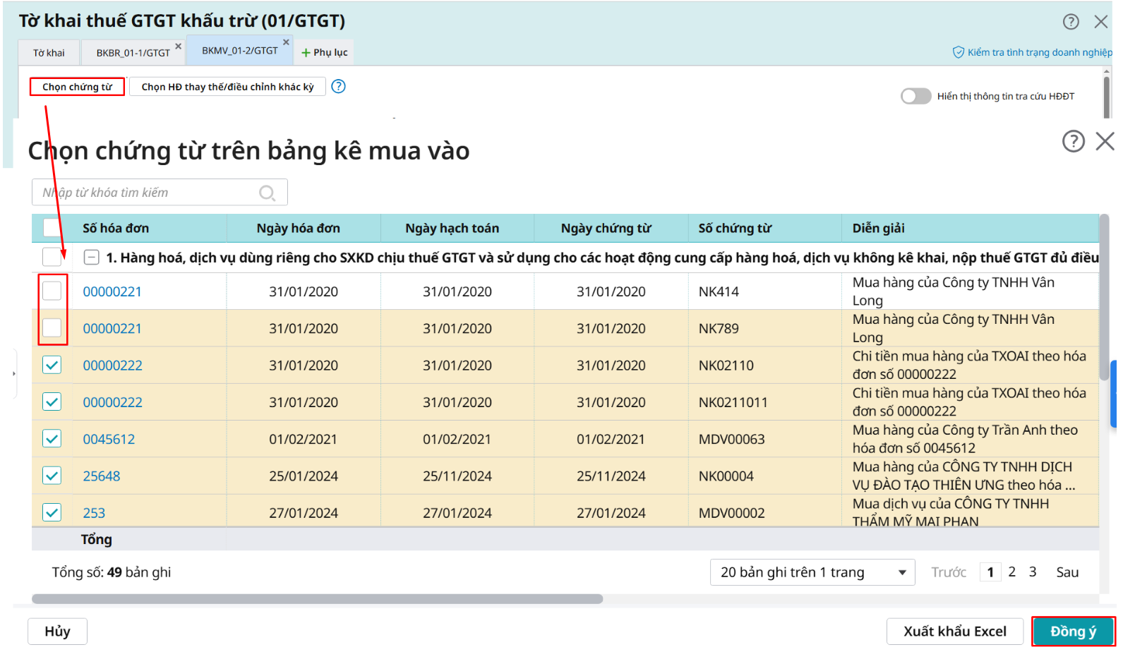 I. Số liệu lên sổ cái nhưng không lên bảng kê thuế1. Chứng từ hạch toán vào TK1331 nhưng không lên bảng kê hóa đơn, chứng từ hàng hóa, dịch vụ mua vàoNguyên nhân 1: Chứng từ không chọn nhóm HHDV mua vào hoặc chọn nhóm HHDV khác nhóm 1 hoặc 2