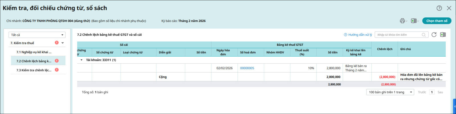 7.2 Chênh lệch bảng kê thuế GTGT và sổ cái
