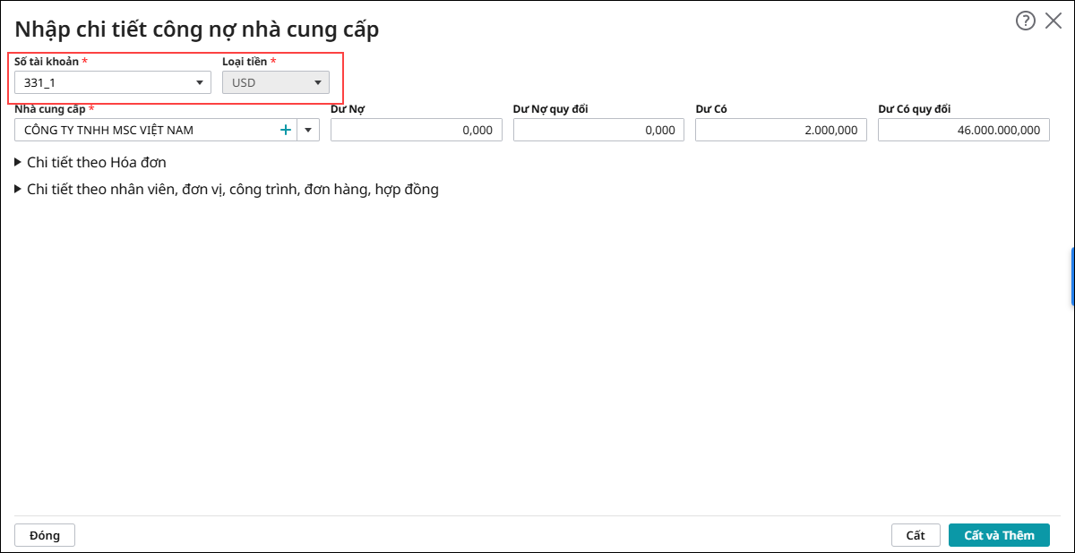 4. Nhập công nợ nhà cung cấp theo ngoại tệ
