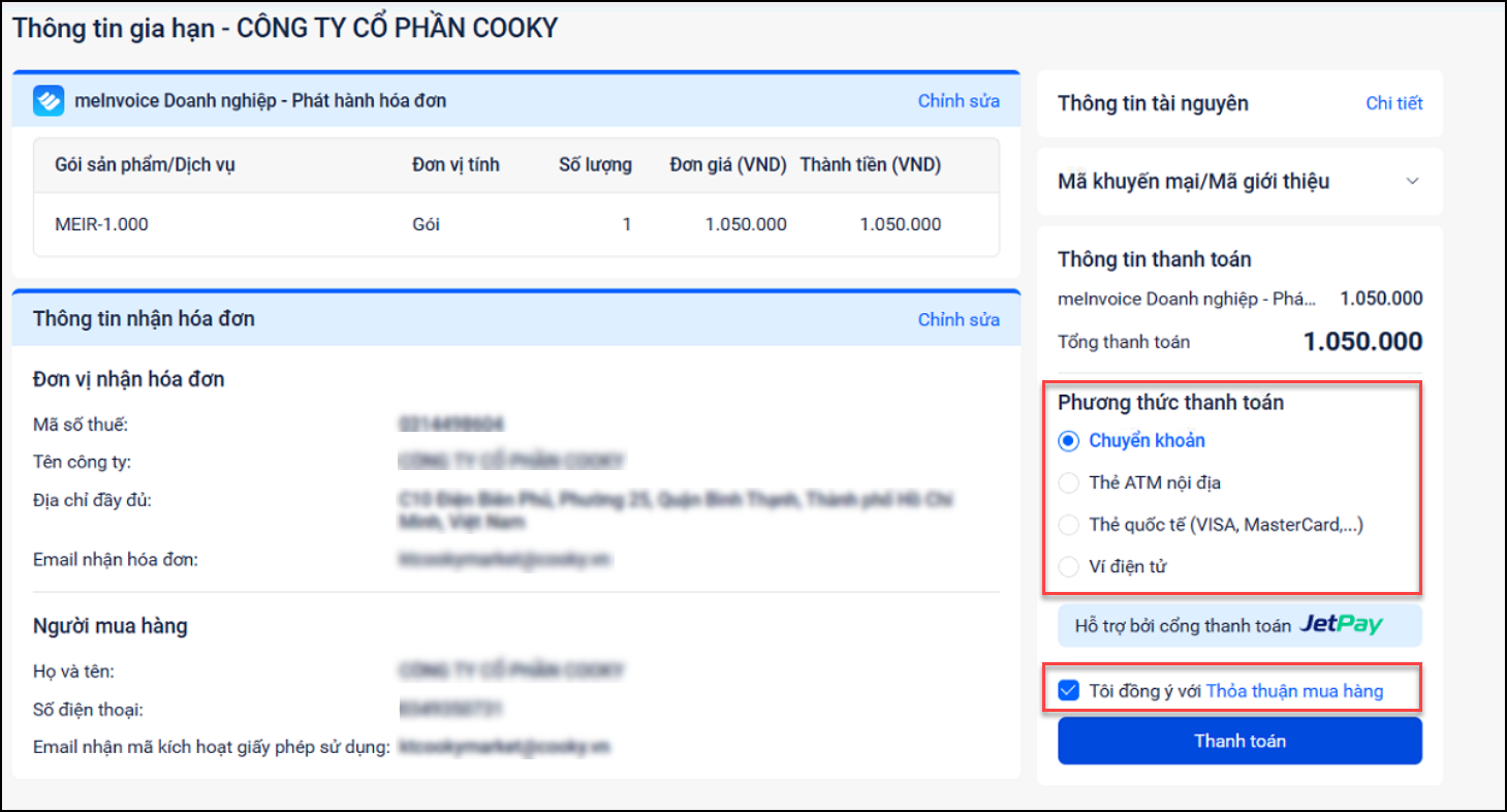 - Tích chọn Tôi đồng ý với Thỏa thuận mua hàng (có thể xem chi tiết thỏa thuận bằng cách nhấn Thỏa thuận mua hàng).