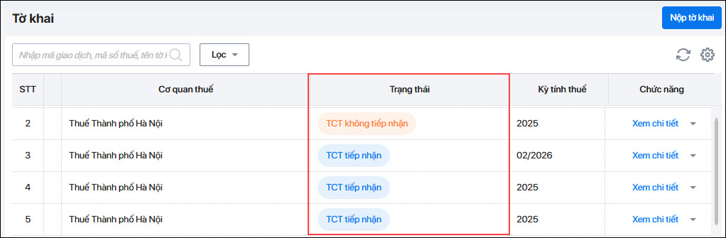 - Khi tờ khai có trạng thái TCT chấp nhận là đã nộp tờ khai thành công.