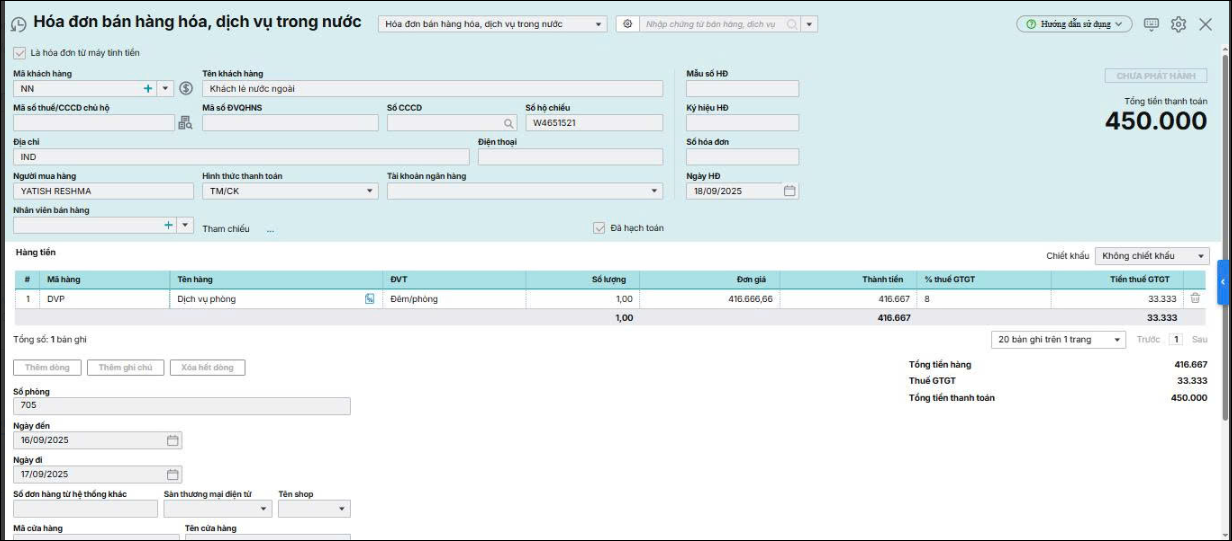 - Các bước thực hiện lập và phát hành hóa đơn dịch vụ lưu trú trên phần mềm
