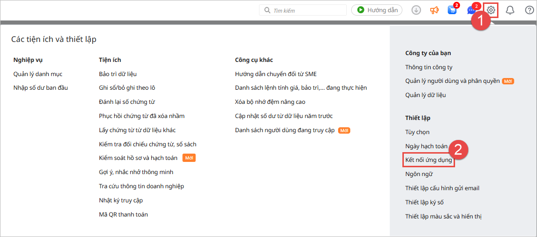 3.1. Kết nối với cơ sở dữ liệu Dược quốc giaBước 1: Vào Các tiện ích và thiết lập\Kết nối ứng dụng.