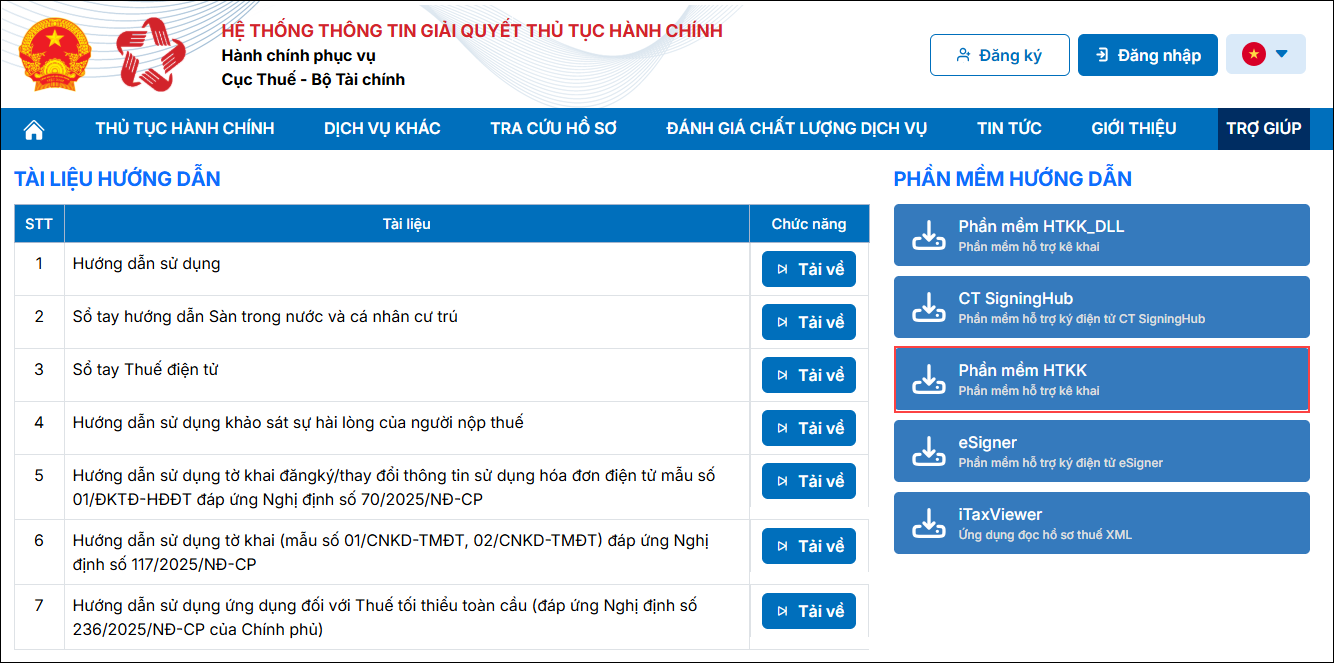 Bước 2: Thực hiện cập nhập phần mềm HTKK lên bản mới nhất