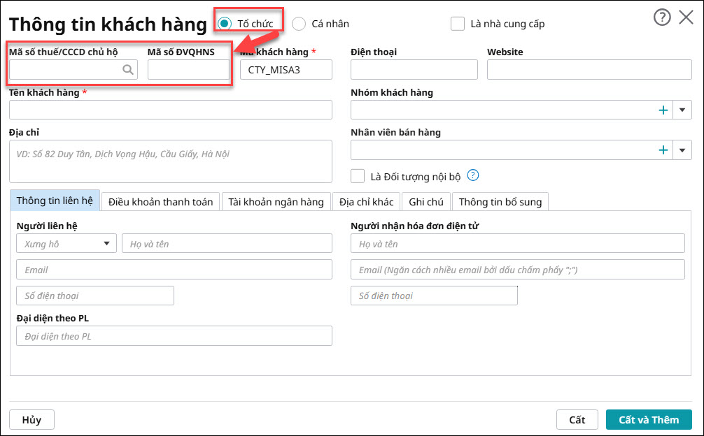 Trường hợp đơn vị bán hàng cho khách lẻ và không có nhu cầu khai báo thông tin số CCCD, số hộ chiếu trong danh mục khách hàng, thì có thể nhập trực tiếp các thông tin này trên giao diện chứng từ bán hàng.