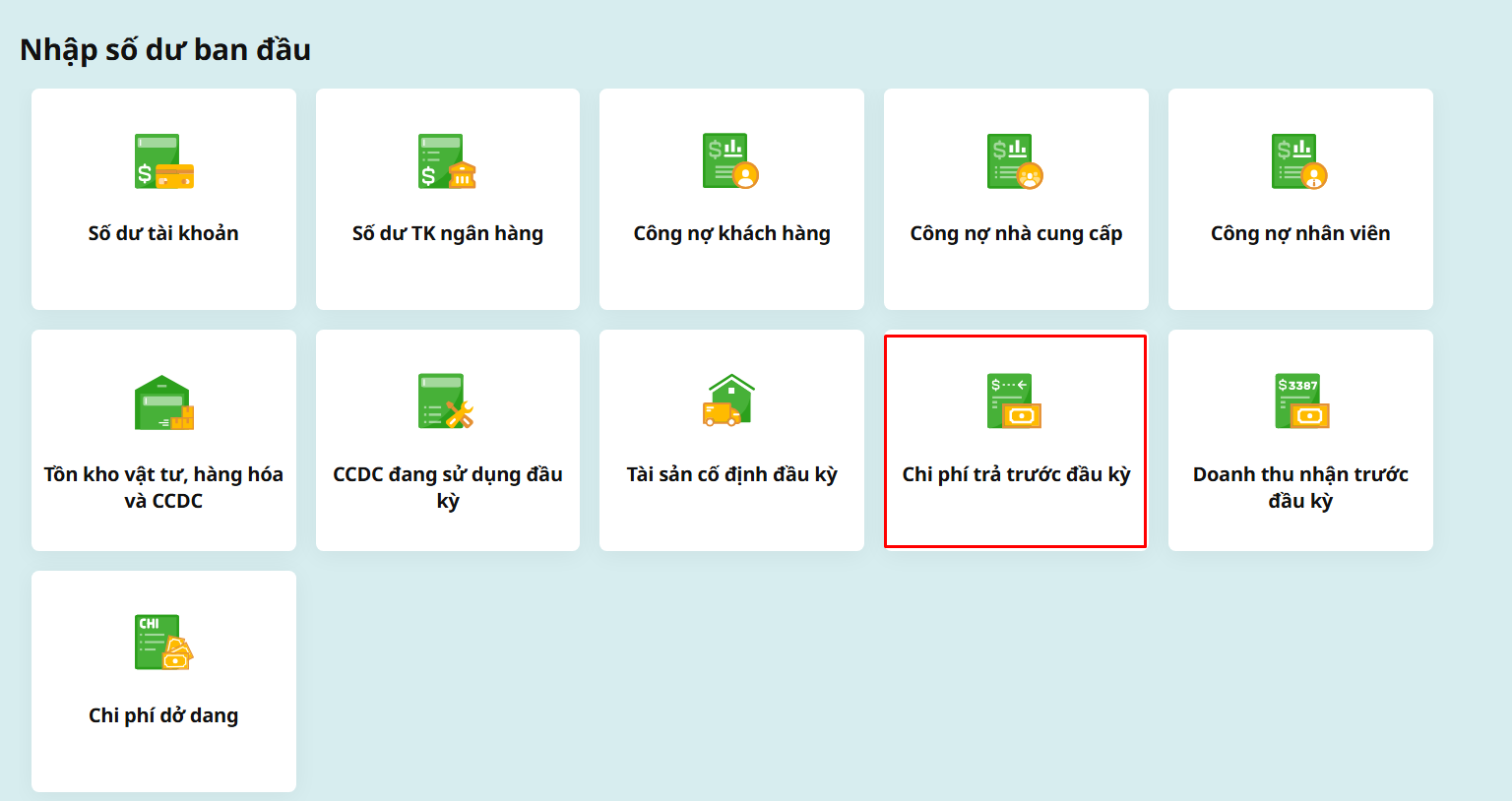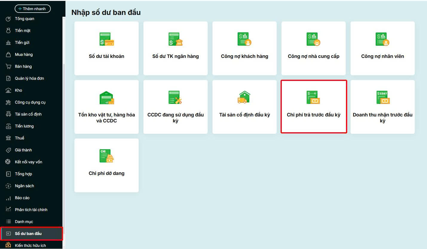 Bước 2: Chọn Chi phí trả trước đầu kỳ