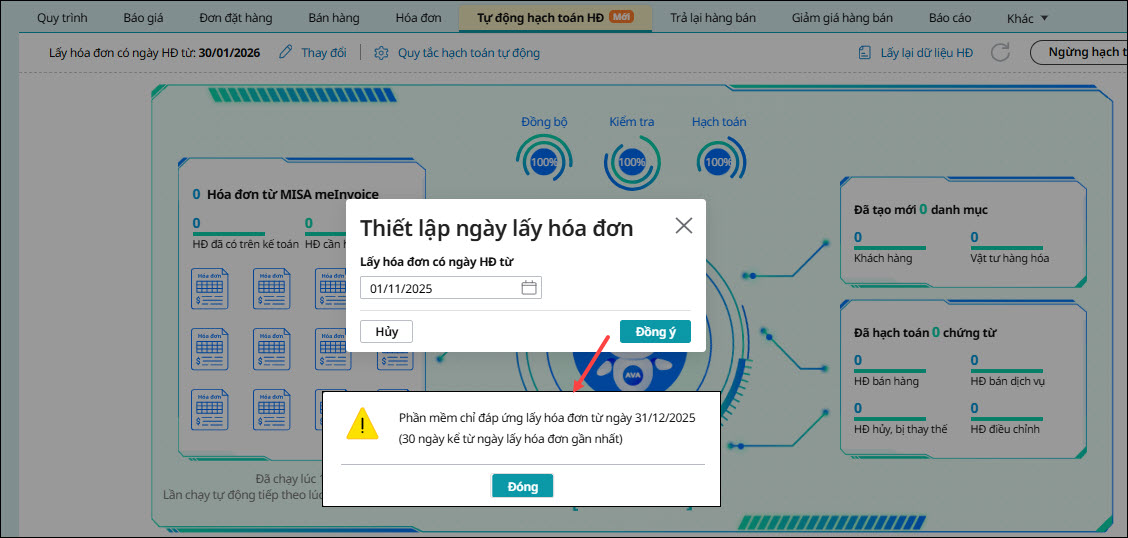 - Hiển thị số lượng hóa đơn hạch toán thành công.