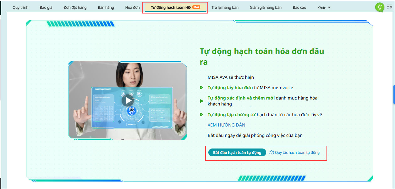 Bài viết hướng dẫn cách tự động hạch toán hóa đơn đầu ra với trợ lý số MISA AVA trên phần mềm kế toán AMIS, đáp ứng đối với hóa đơn đầu ra được phát hành trên phần mềm hóa đơn MISA MeInvoice và cần lấy về phần mềm AMIS kế toán hạch toán.