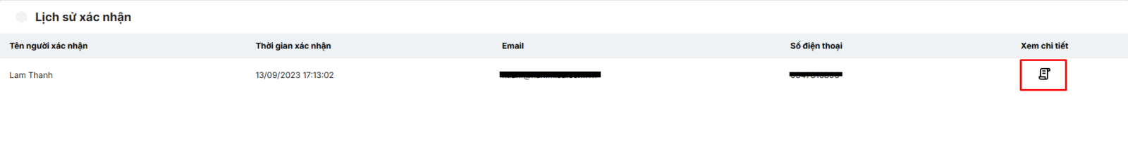 - Trường hợp người dùng đã xác nhận thỏa thuận sử dụng dịch vụ thì khi chọn mục thỏa thuận dịch vụ chương trình sẽ hiển thị giao diện lịch sử xác nhận. Nhấn Xem chi tiết để xem chi tiết nội dung bản thỏa thuận.