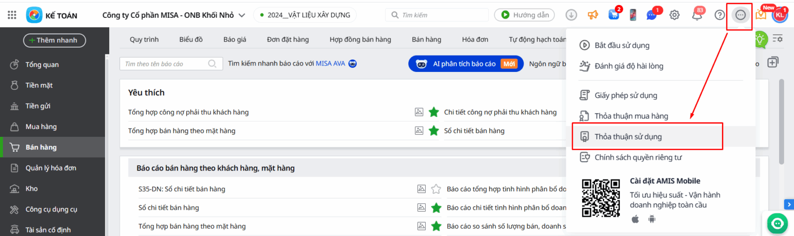 - Trường hợp người dùng chưa xác nhận thỏa thuận sử dụng dịch vụ AMIS Kế toán: