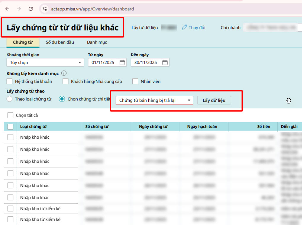 Bài viết hướng dẫn cách xử lý khi phần mềm AMIS Kế toán báo lỗi trong quá trình “Lấy chứng từ từ dữ liệu khác”. Mục đích giúp kế toán nhận biết nguyên nhân lỗi thường gặp như chứng từ trùng, khác loại tiền tệ hoặc sai trạng thái hóa đơn, từ đó áp dụng biện pháp khắc phục phù hợp để đảm bảo việc chuyển và đồng bộ dữ liệu giữa các đơn vị được chính xác, tránh trùng lặp hoặc sai lệch thông tin.