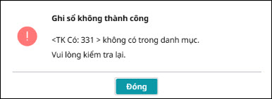 Nguyên nhân: Do trong hệ thống tài khoản có mở tài khoản chi tiết nhưng trên chứng từ đang chọn tài khoản tổng hợp để hạch toán Cách xử lý: Chọn lại tài khoản hạch toán trên chứng từ về tài khoản chi tiết nhất Biểu hiện 3: Khi cất chứng từ báo lỗi <TK...> không có trong danh mụcBiểu hiện: Sau khi nhập xong chứng từ, nhấn Cất thì báo lỗi “Ghi sổ không thành công. <TK…> không có trong danh mục “