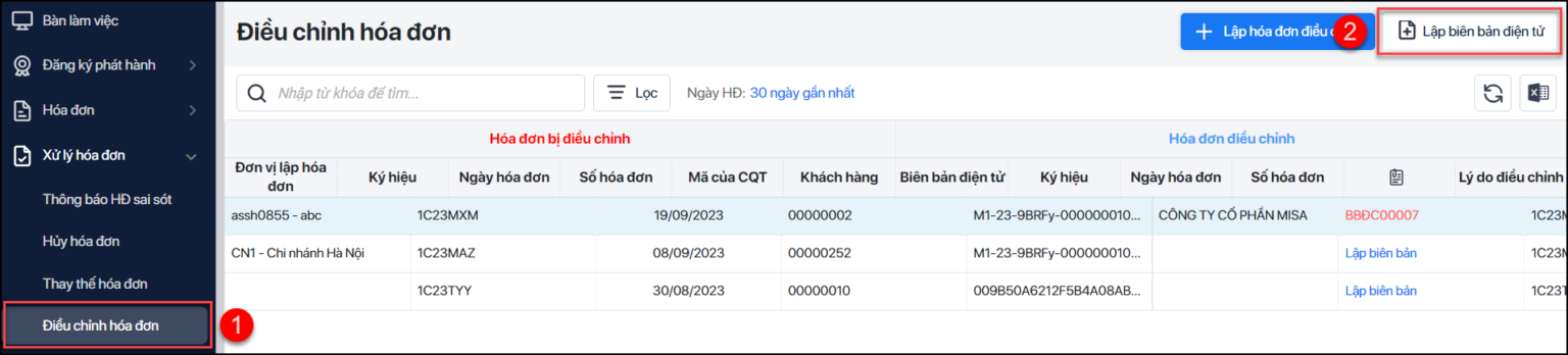 Bước 2: Chương trình tự động điều hướng sang giao diện lập Biên bản thay thế/Biên bản điều chỉnh hóa đơn trên MISA meInvoice.