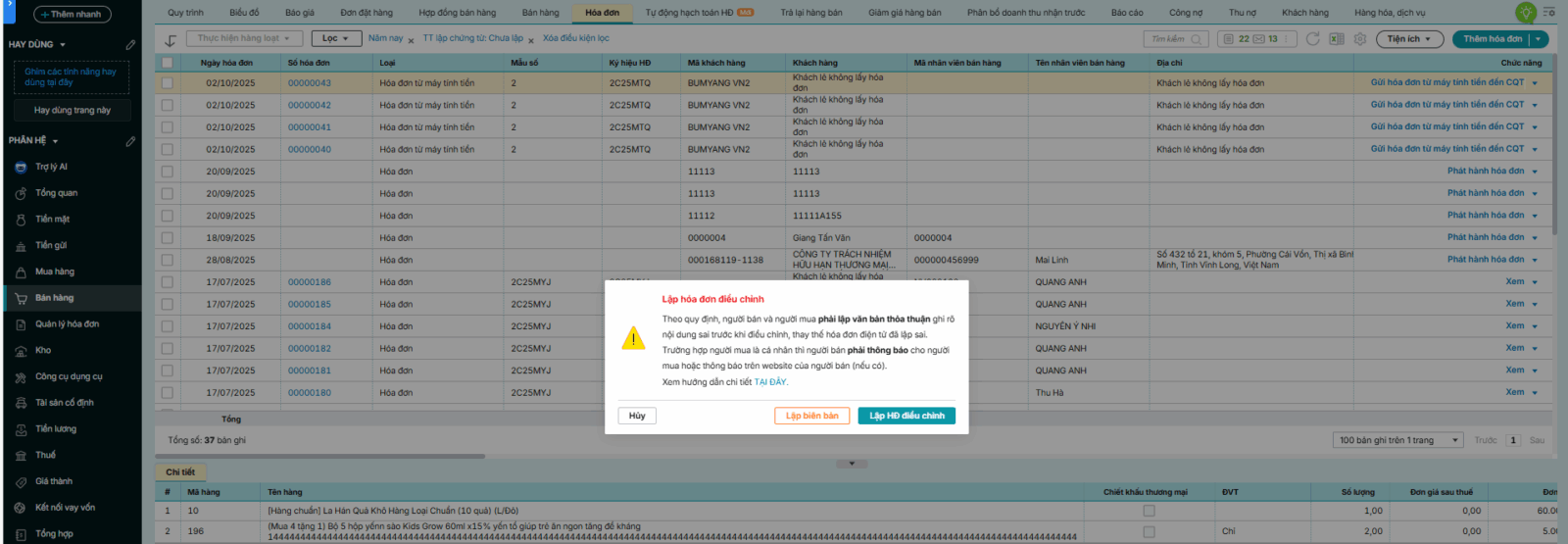 Phần mềm cho phép khách hàng lập và phát hành hóa đơn điều chỉnh theo Nghị định 70/2025/NĐ-CP, trong trường hợp hóa đơn đã có mã của Cơ quan Thuế nhưng sai sót mã số thuế, số tiền,…và đã gửi người mua.