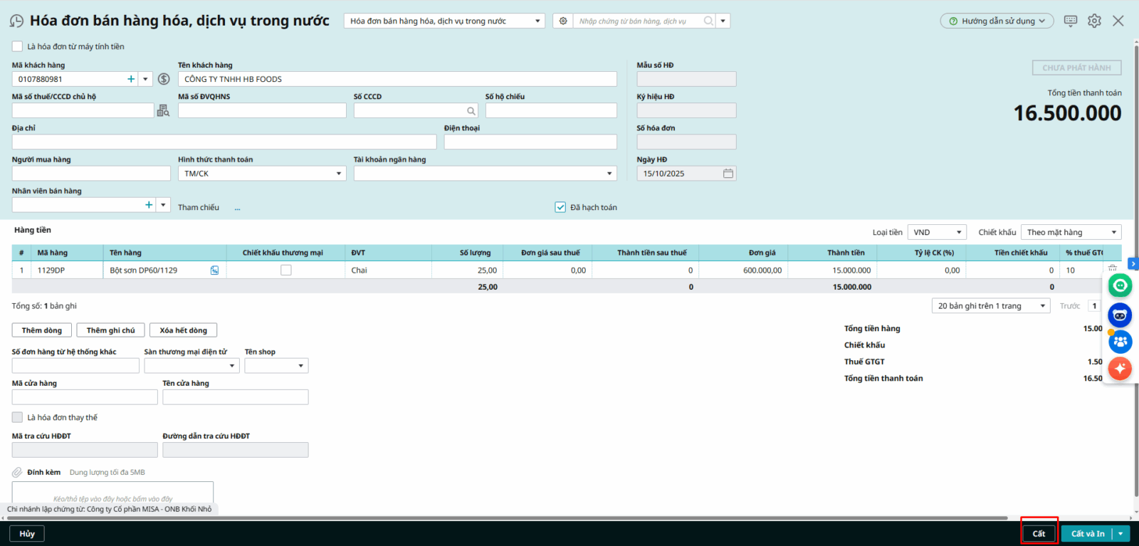 Bước 3: Kiểm tra lại thông tin và chỉnh sửa (nếu cần), sau đó nhấn Cất để hoàn tất.