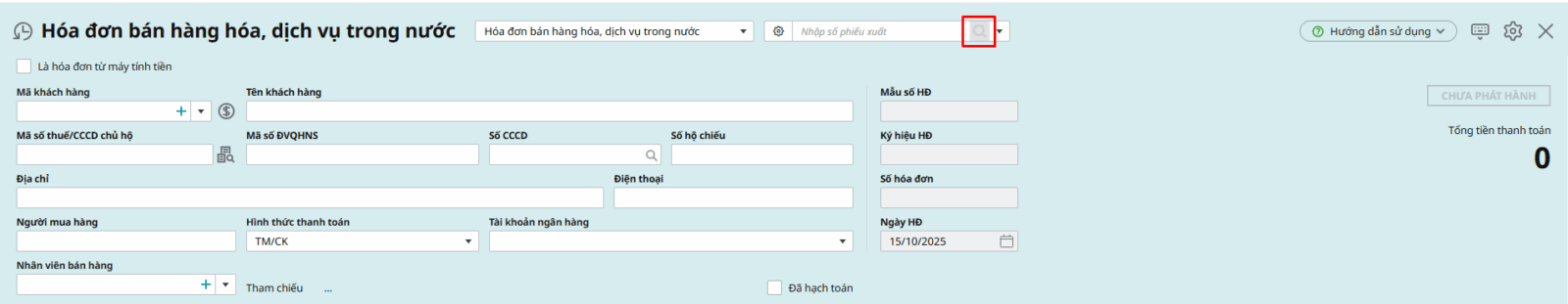 • Cách 2: Nhấn vào biểu tượng kính lúp (🔍) để mở cửa sổ “Chọn Phiếu xuất”.