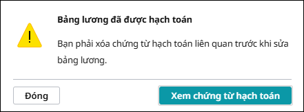 “Bảng lương đã được hạch toán. Bạn phải xóa chứng từ hạch toán liên quan trước khi sửa bảng lương.”