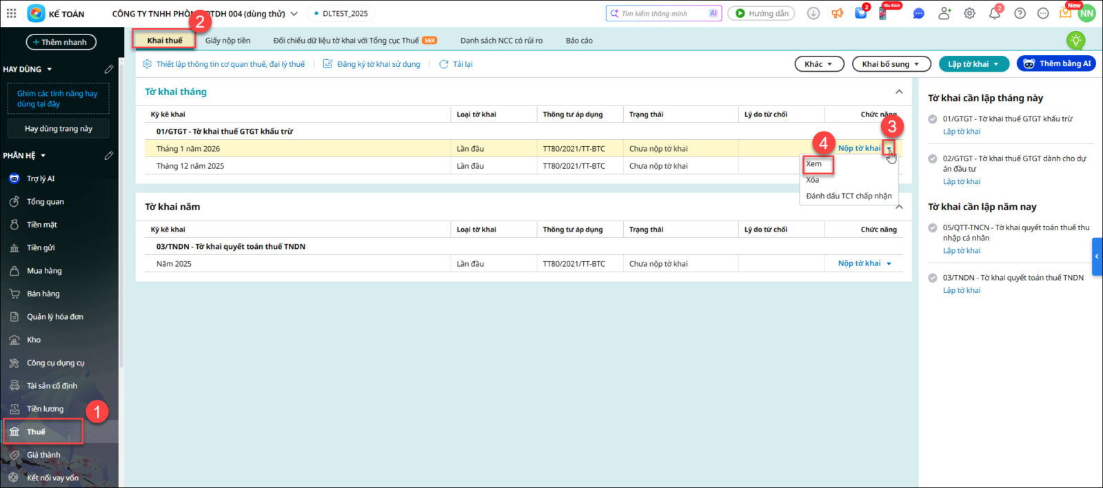 Câu hỏi 10: Cách xem các tờ khai đã lập trên phần mềm