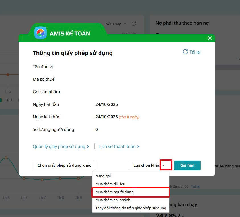 5. Làm thế nào để mua thêm người dùng/User trên AMIS Kế toán