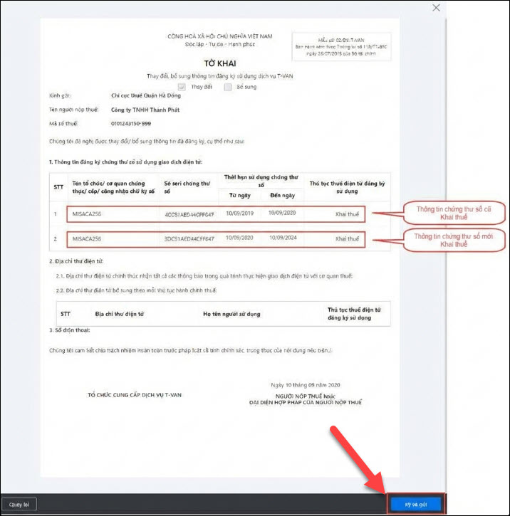 Bước 7: Kiểm tra kết quả đăng ký thay đổi thông tin Chứng thư số.