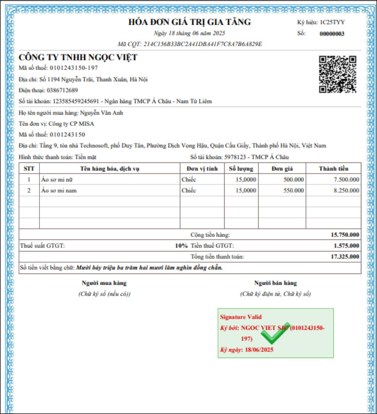 Giả sử đã xuất hóa đơn số 00000003 ngày 18/06/2025, ký hiệu 1C25TYY cho khách hàng, giá trị 17.325.000đ. Nay do xuất trùng, muốn thay thế hóa đơn này về giá trị 0. Đơn vị đã chuyển sang sử dụng hóa đơn máy tính tiền.