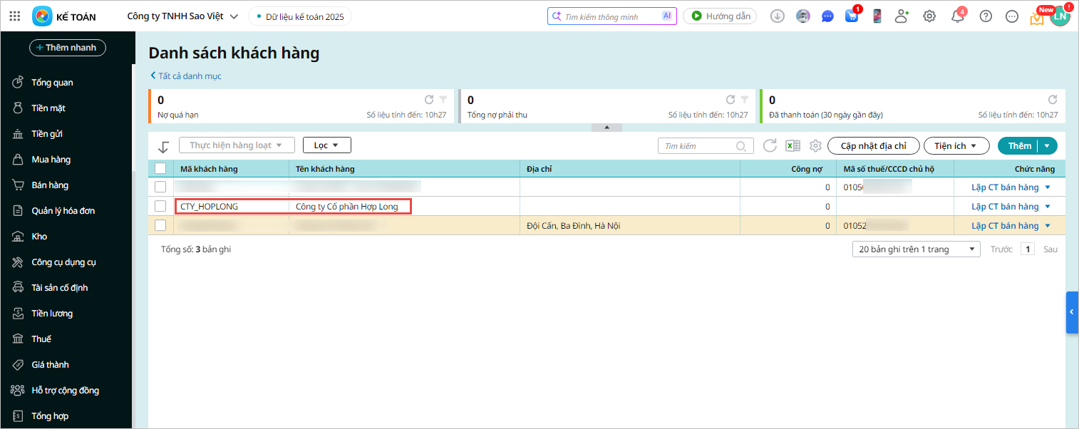 - Bước 5: Khi đó thông tin khách hàng vừa tạo trên ứng dụng tập đoàn sẽ được tự động đồng bộ về AMIS Kế toán:
