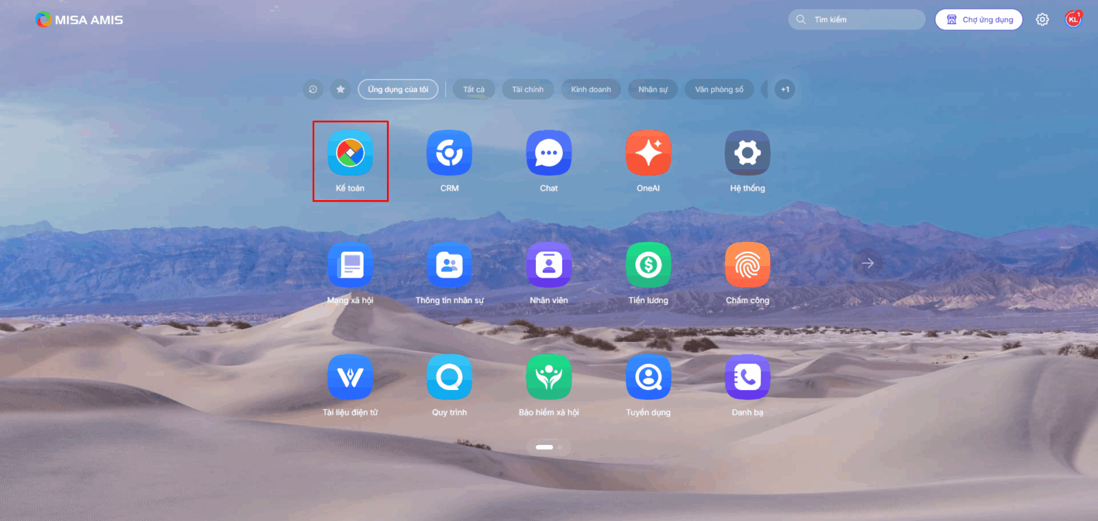 Bước 1: Đăng nhập phần mềm AMIS kế toán. Vào đường dẫn https://amisapp.misa.vn/login/ hoặc vào trang AMIS Platform, tích chọn ứng dụng AMIS Kế toán: