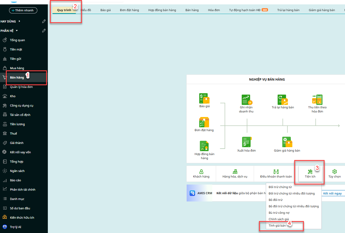 2.1. Thiết lập các thông tin phục vụ cho việc tính giá bán