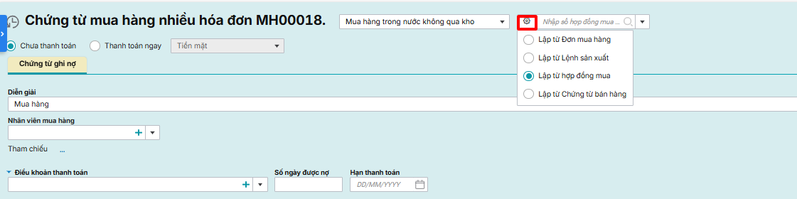 2.2. Lập chứng từ mua hàng trong nước không qua kho