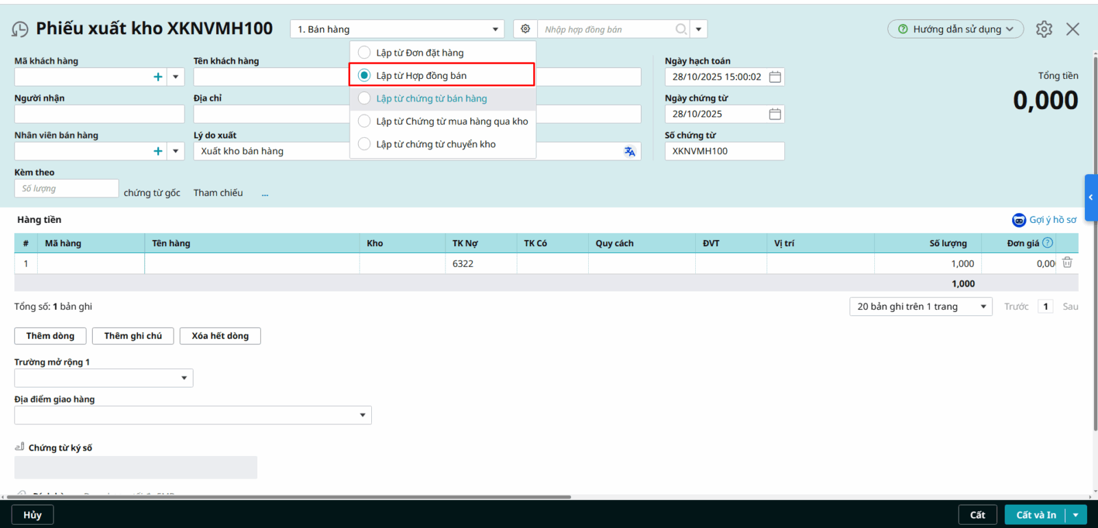 2.5. Lập phiếu xuất kho từ hợp đồng bán
